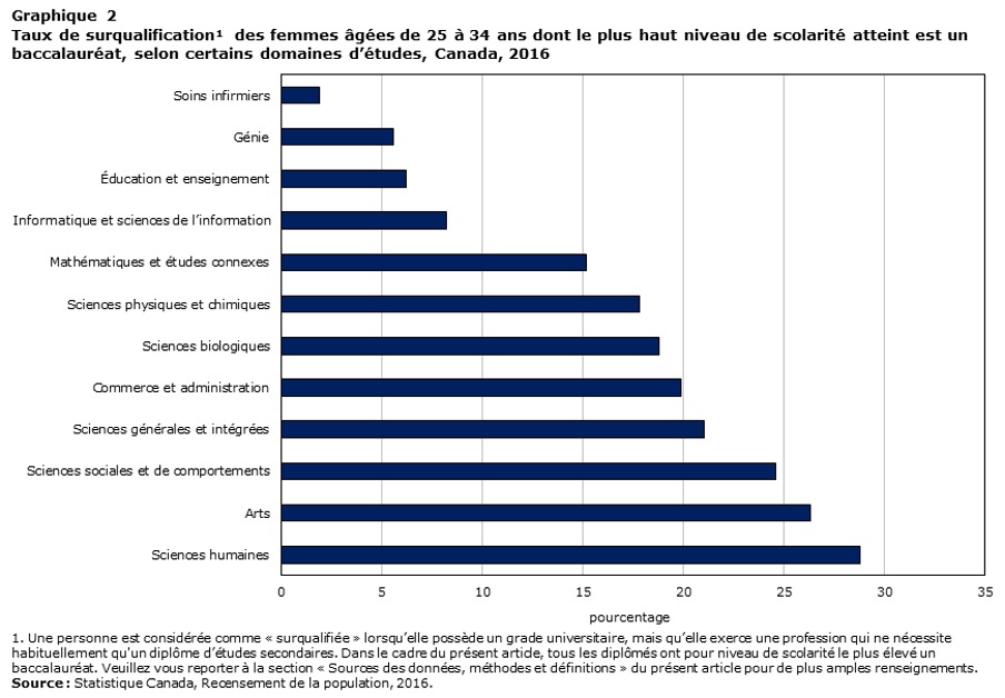 STATISTIQUE CANADA. Les jeunes titulaires d’un baccalauréat trouvent-ils des emplois qui correspondent à leur domaine d’étude? (29 novembre 2017), https://www12.statcan.gc.ca/census-recensement/2016/as-sa/98-200-x/2016025/98-200-x2016025-fra.cfm, consultée le 8 mars 2022.